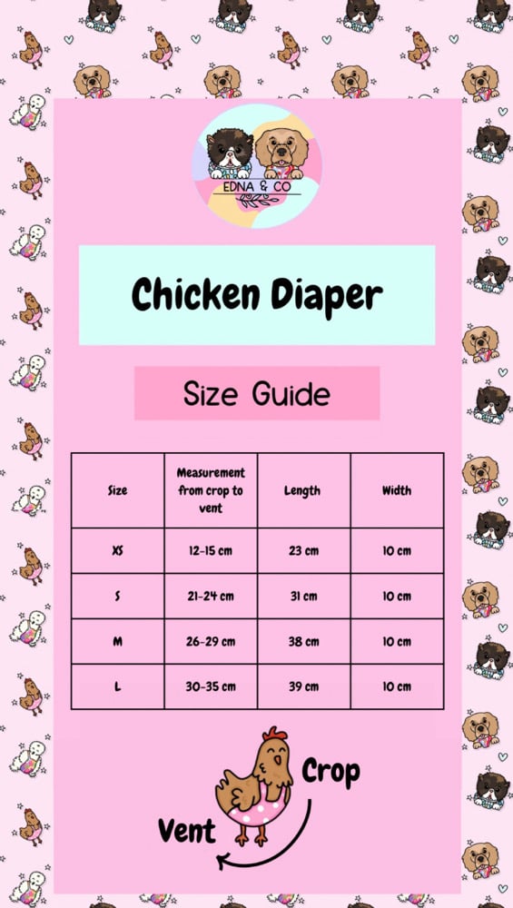 Say goodbye to messy surprises! Our Edna & Co Chicken Nappies are designed to stylishly and comfortably capture those “unwanted” little accidents your indoor feathered friends make.